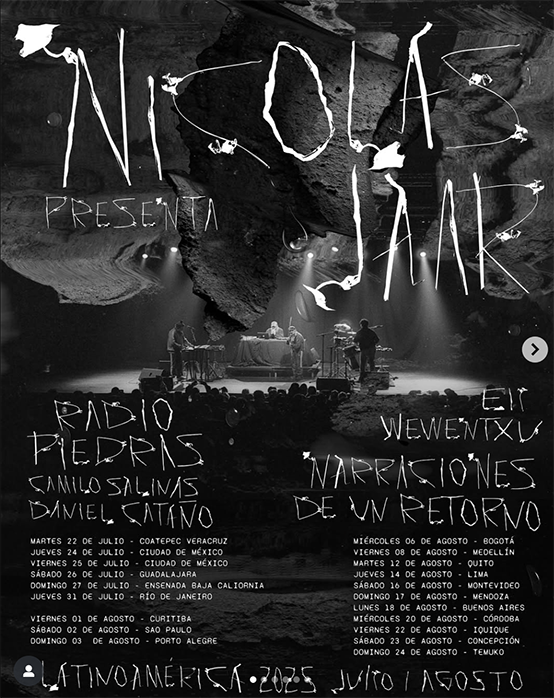 El 24 y 25 de julio, Jaar tomará el escenario del imponente Polyforum Siqueiros de la Ciudad de México con su espectáculo Piedras, un performance inmersivo que mezcla capas de ambient, texturas electrónicas y exploraciones rítmicas tan personales como hipnóticas. El anuncio también contempla fechas en Veracruz, Baja California y Guadalajara, completando un recorrido por el país.